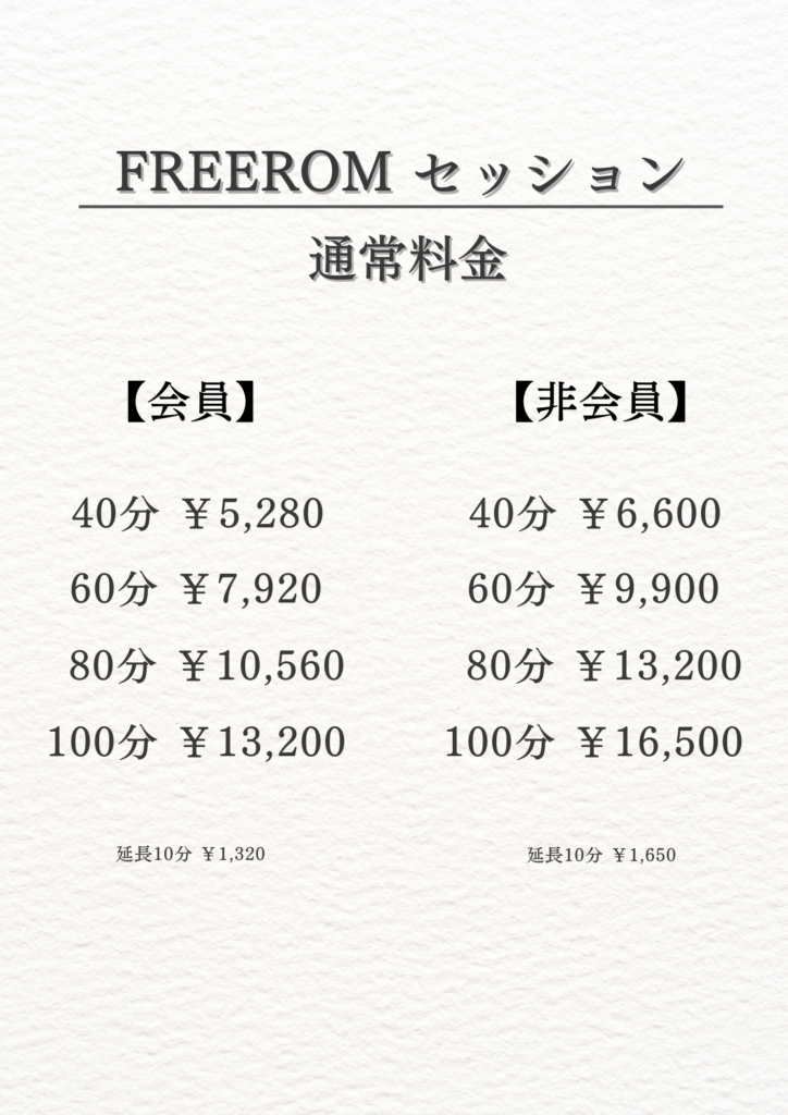 カードをお持ちの方は「会員」扱いとさせていただき、FREEROMのセッションをお得な会員価格でご利用いただけます。