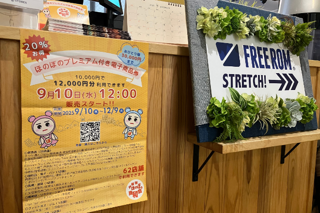 FREEROMは、戸塚駅西口エリアを中心に活動する「戸塚宿ほのぼの商和会」の加盟店です。商和会が発行・運営する地域商品券も導入しており、地元の皆さまにより身近にご利用いただける店舗を目指しています。